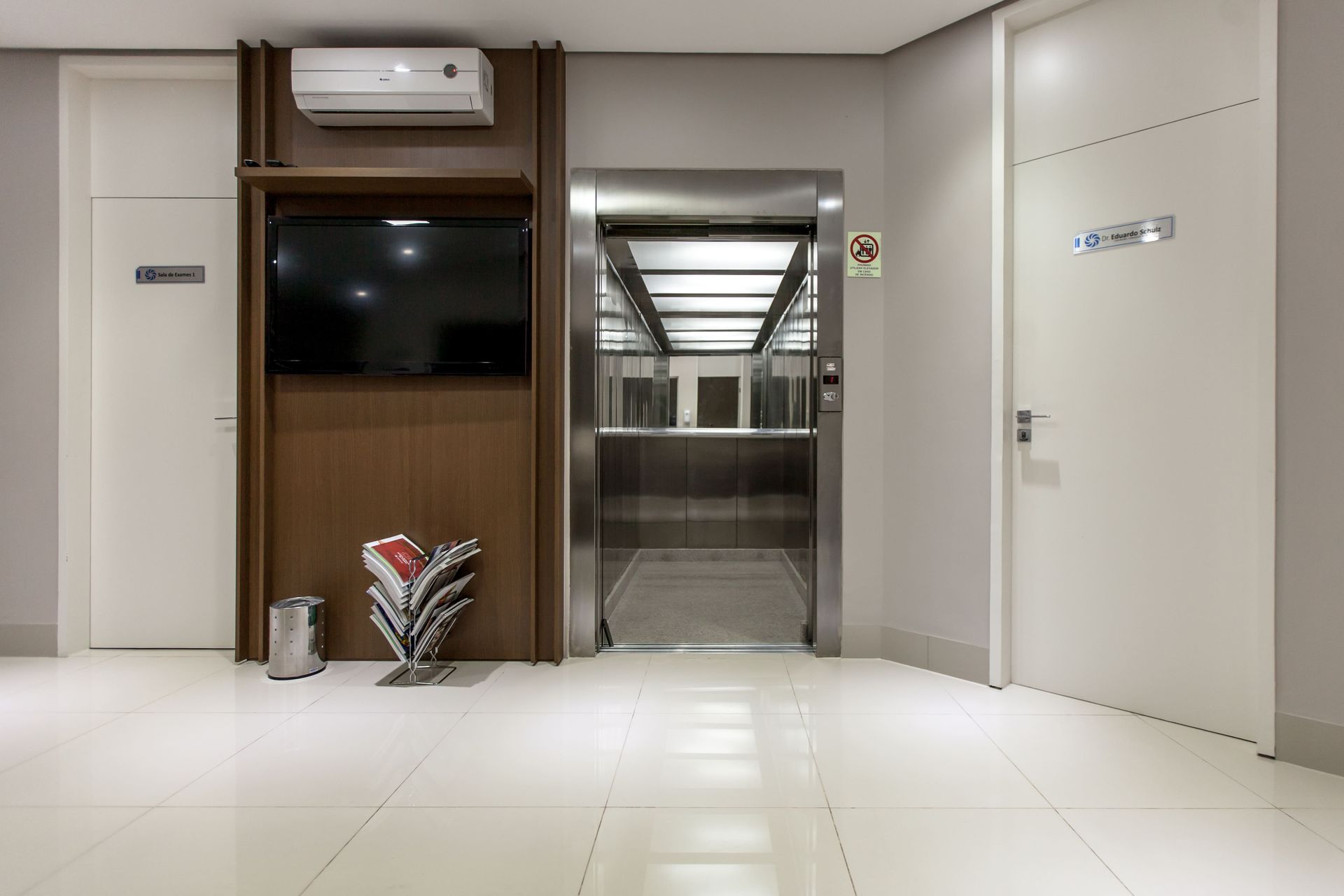 Projetado para ambientes de saúde, suas dimensões são mais ampliadas para uma movimentação mais suave, e recursos específicos para um transporte seguro de pacientes em macas e leitos.